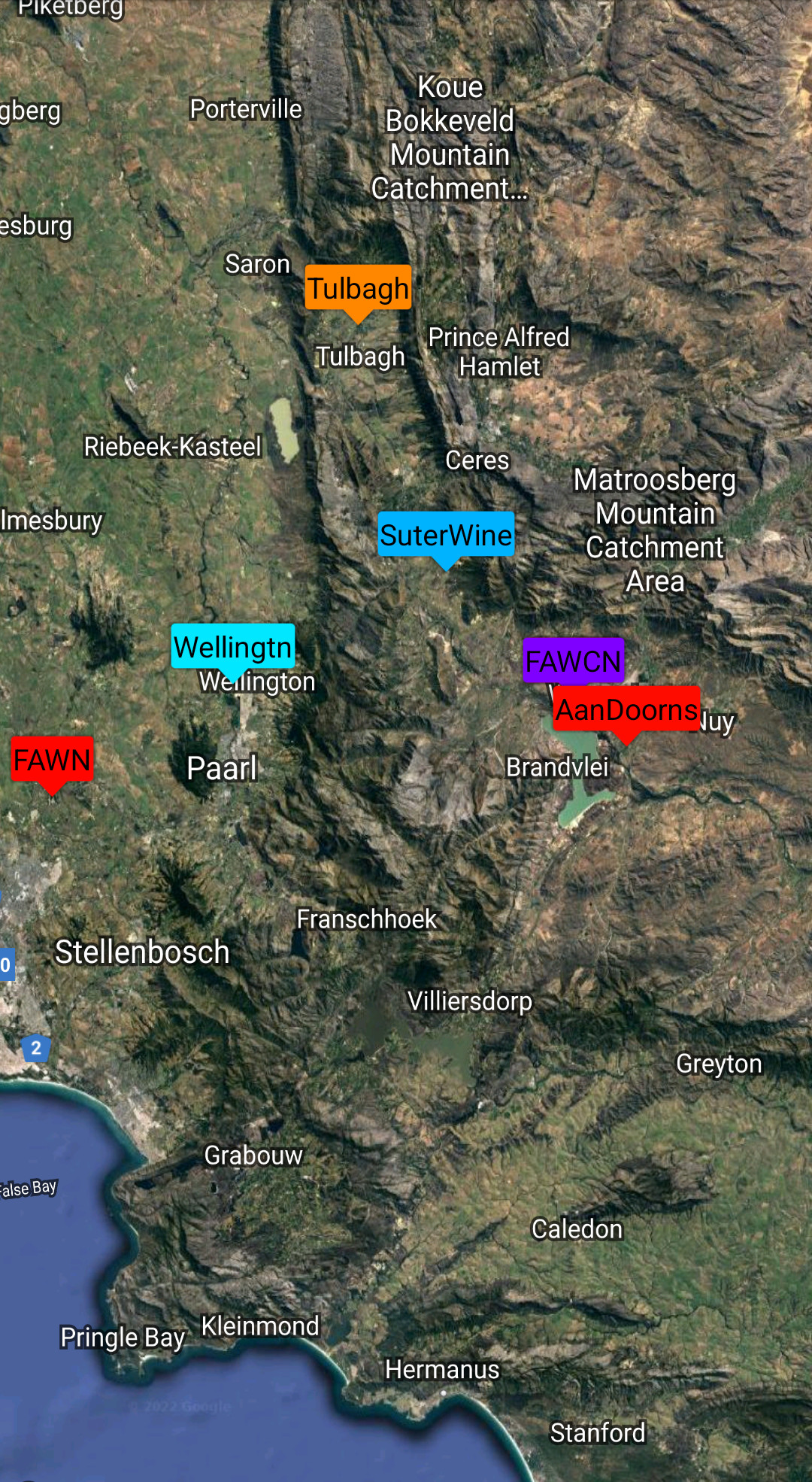 A sample of the Open Glider Network ISM receivers that Aviaturing operates, with a coverage area of tens of thousands of square kilometers in the Western Cape, South Africa and beyond.